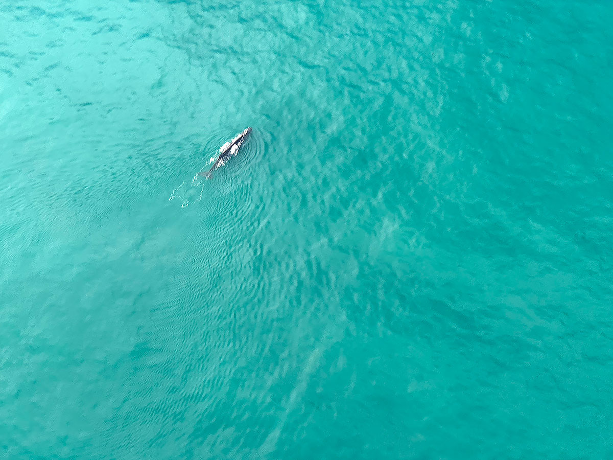 조종사는 “다른 개체를 더 찾을 수 있어요”라며 비행을 이어갔다. 몇 분 뒤, 다른 고래가 바닷속 그림자처럼 보이기 시작했고, 짧은 순간이었지만 두 마리를 동시에 볼 수 있는 행운도 있었다.